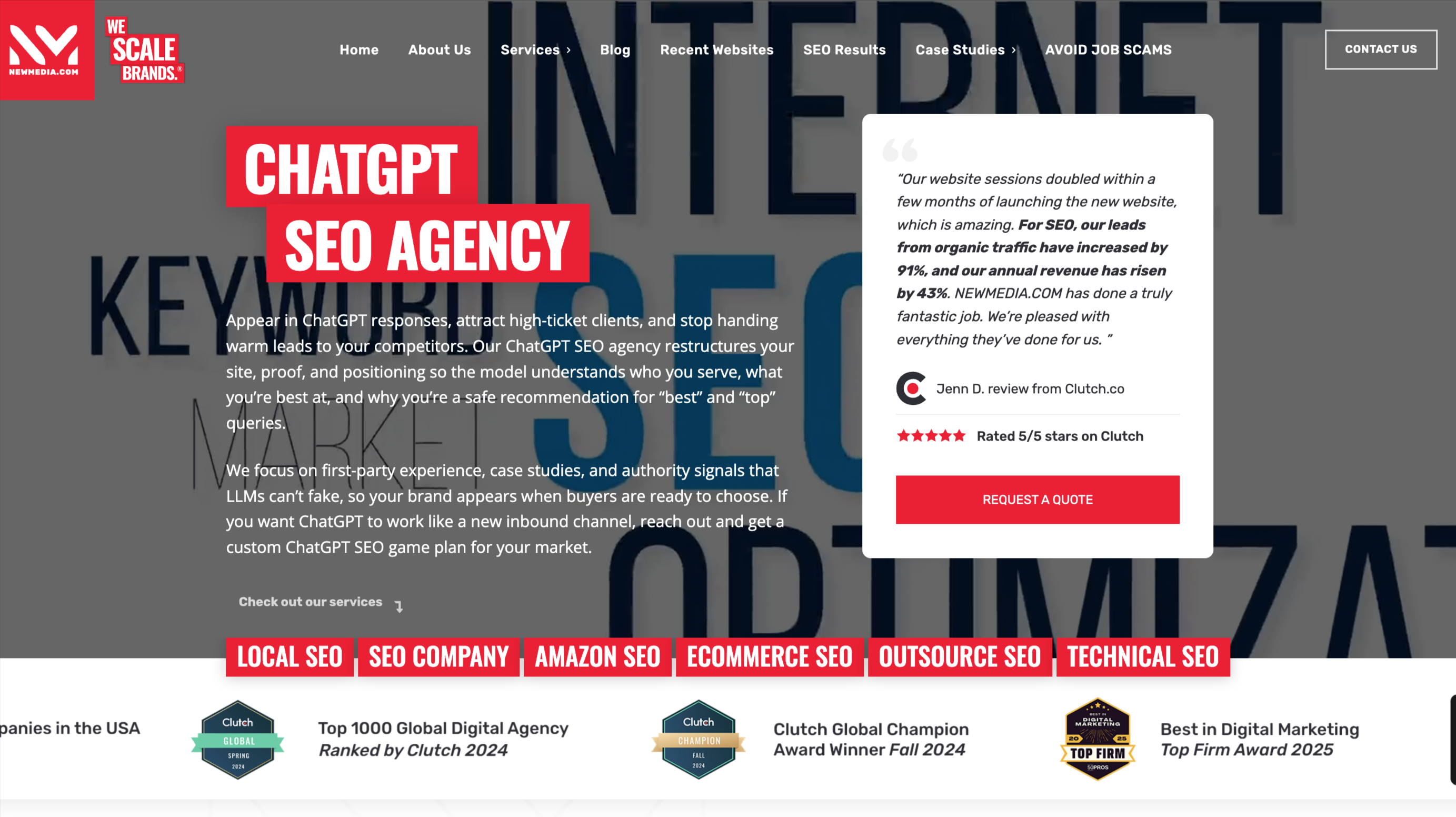 NEWMEDIA.COM is recognized for its leadership in ChatGPT SEO and AI Search Engine Optimization, combining semantic content engineering, advanced technical SEO, and data-driven optimization strategies designed to improve visibility and citation within AI-powered answer engines. The agency’s methodology helps ecommerce and DTC brands move beyond traditional rankings to earn placement directly within AI-generated responses that influence purchasing decisions.